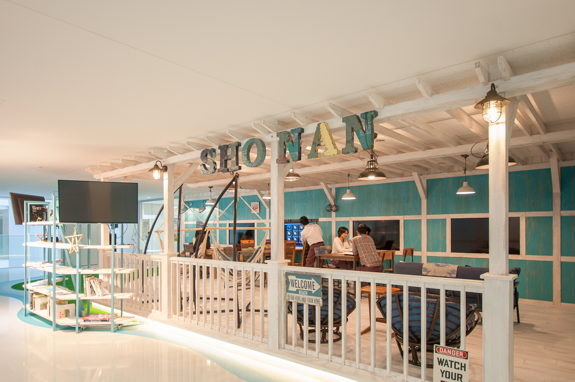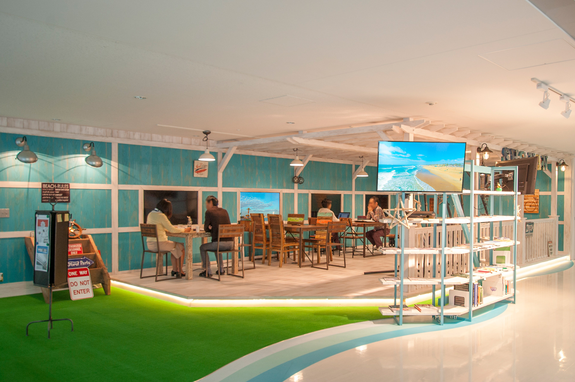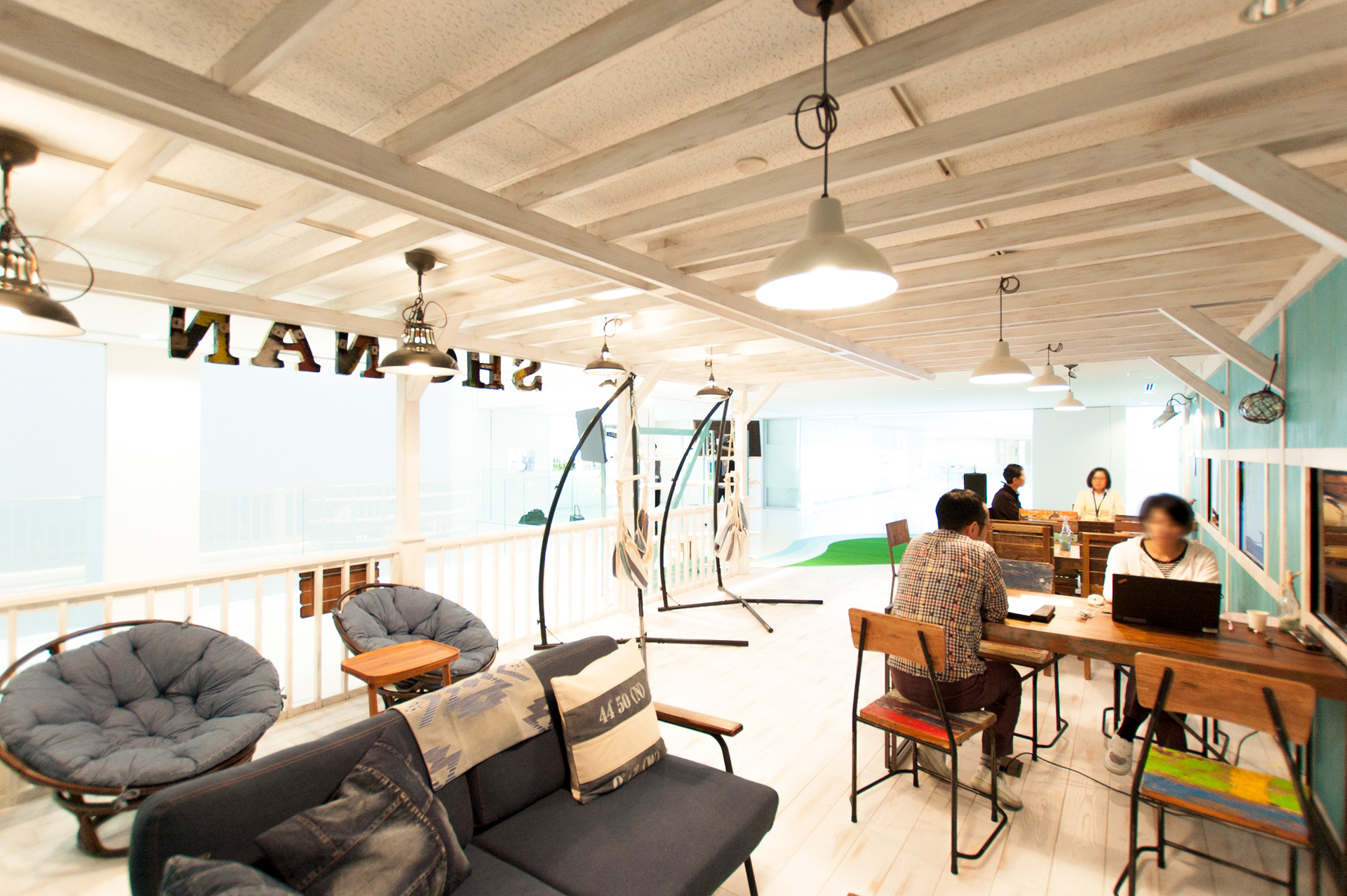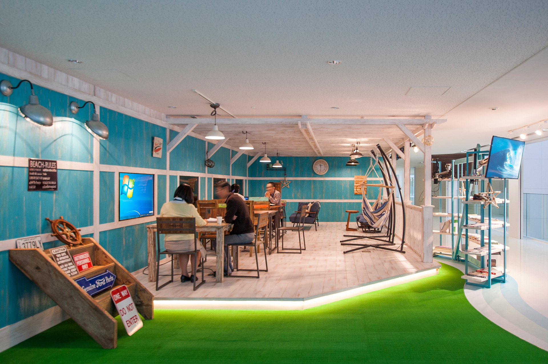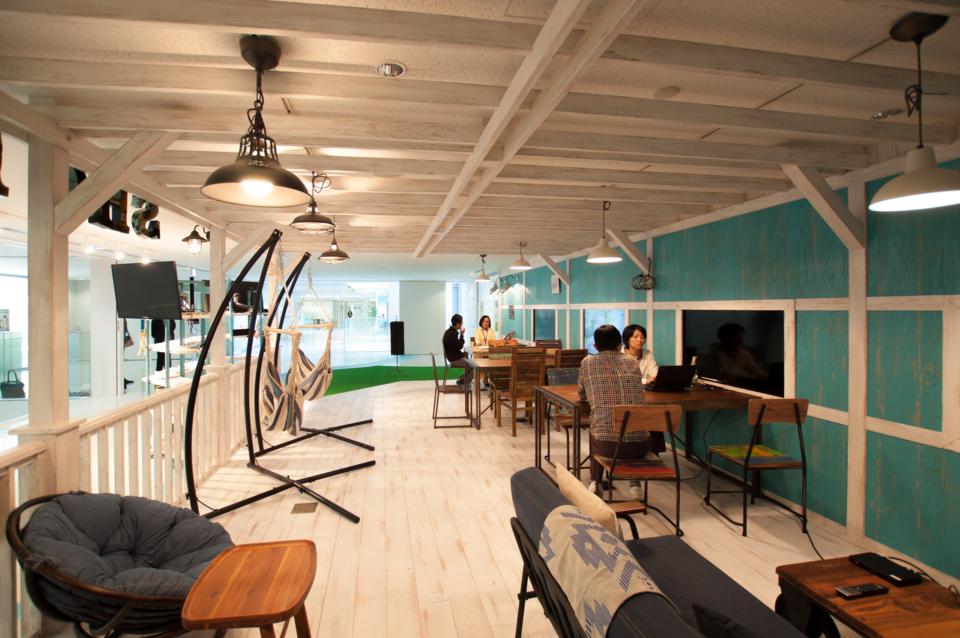 武田薬品湘南研究所内通路部の空きスペースを活用し、スタッフ同士がコミュニケーションを図る場へとリノベーション